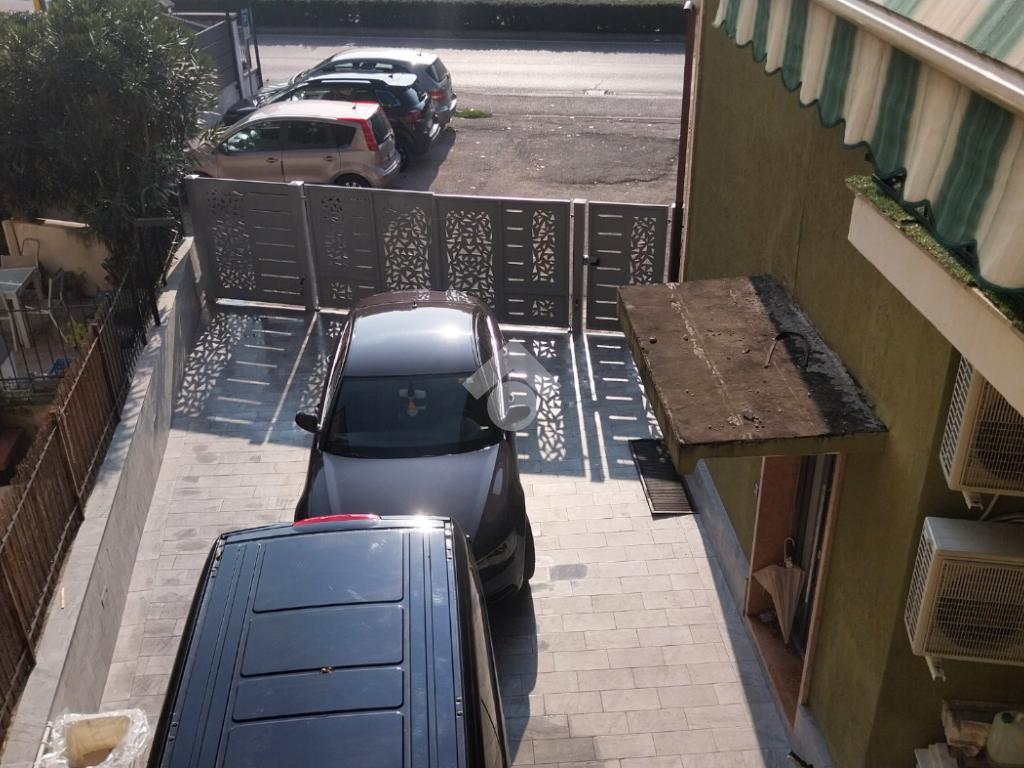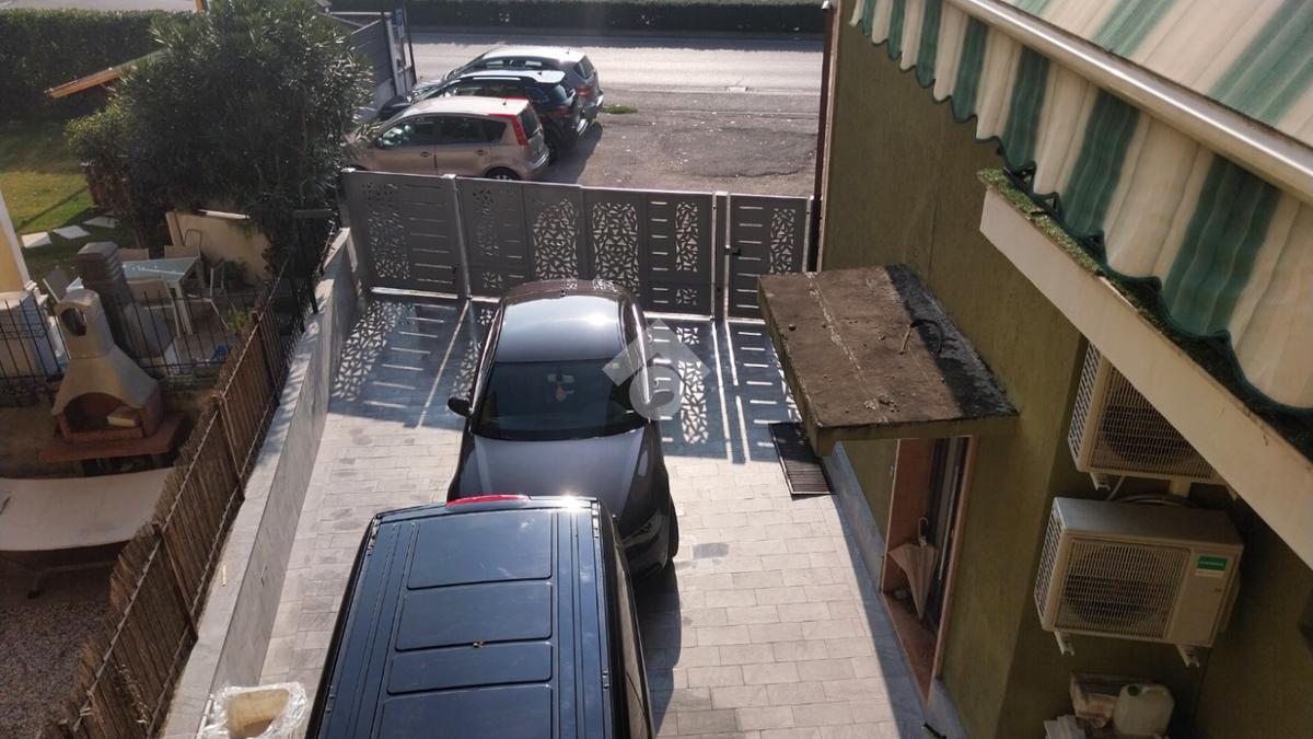 L'accesso è totalmente privato tramite una corte di proprietà che offre spazio per parcheggiare due auto. Una comoda ed elegante scala in legno conduce all'appartamento:
